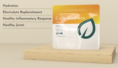 Coco-Hydrate restores electrolytes, supports joints, and helps your body respond to daily stress — naturally refreshing from within.